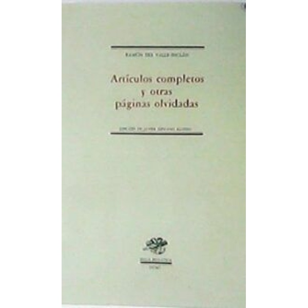 Sinopsis: (Introducción: 1. Esbozo biográfico - 2. Valle-Inclán y la prensa - 3. Los artículos de Valle Inclán - 4. Otras páginas olvidadas - Artículos completos: Angel Guerra - Cartas galicianas - Tristana - Los últimos versos del Duque de Rivas - Pablo Iglesias - Las verbenas - El anarquismo español - Cómo escribió Zorilla "Don Juan Tenorio" - La casa de Aizgorri - Modernismo - A ras de tierra - La pintura vasca - Autocrítica - Paúl y Angulo y los asesinos del general Prim - Mi rebelión en Barcelona - Etc.). Incluye índice onomástico. Edición de Javier Serrano Alonso.